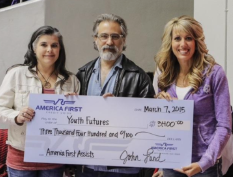 OGDEN, Utah--America First Credit Union awarded Youth Futures Utah, a homeless shelter for youth, with $3,400 during the Weber State University basketball game. America First paid the organization $10 for each assist the Weber State University basketball team completed throughout the 2014 – 2015 season. With 340 assists, the donation amounted to $3,400 in total for the newly-opened youth homeless organization, located in Ogden, Utah.